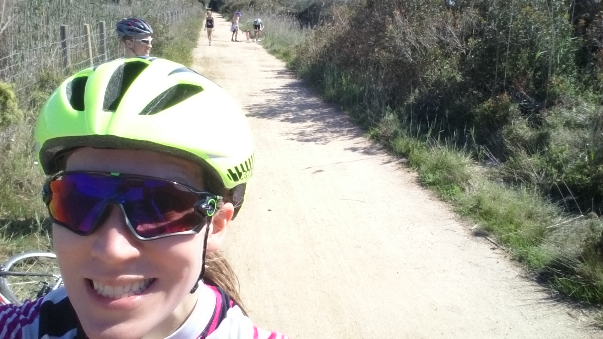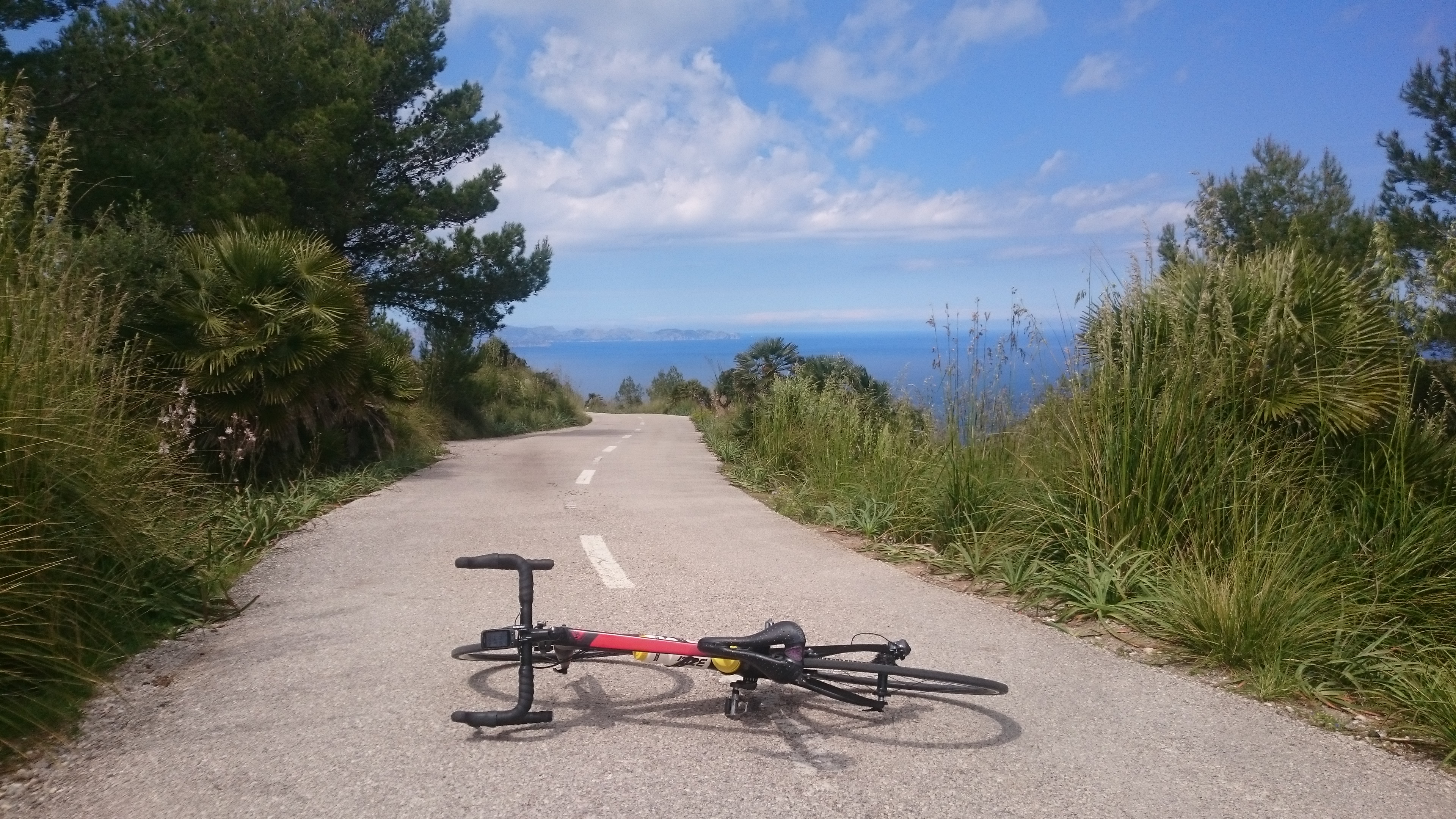 Sista klättringen för mig här fick bli den jag väggade i dag 2. Idag tog jag mig upp med äran i behåll, men jag har verkligen inte rätt utväxling för så branta backar! 3km med korta 16-18% avsnitt som avlöser varandra är inte snällt för benen… Vilket min piriformis börjar påminna mig om, och har ingen lust att komma hem vare sig skadad eller sjuk så Jimmy fick klara sig själv därefter 🙂